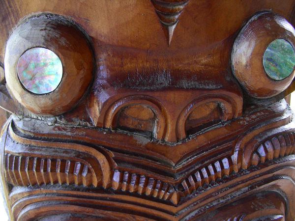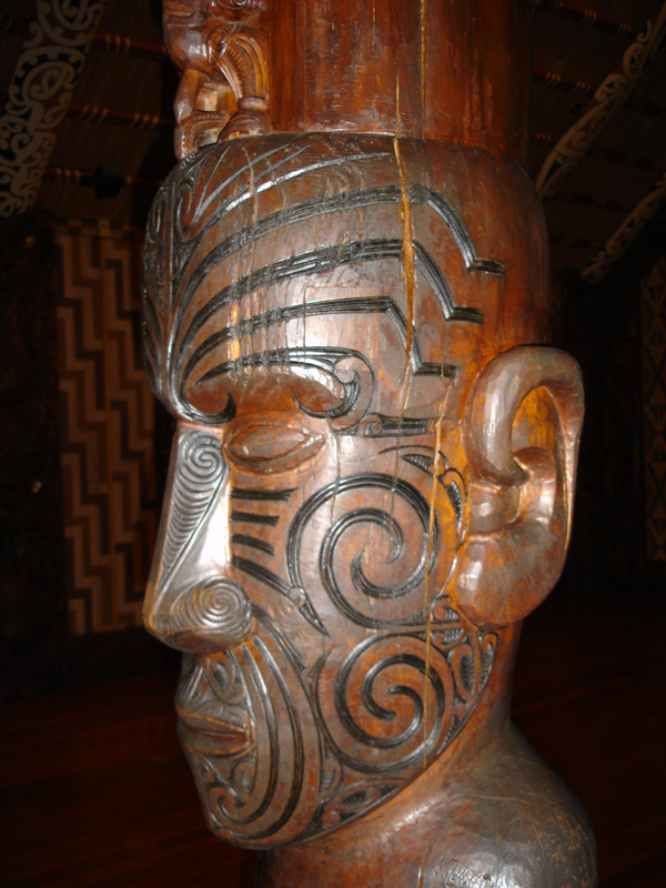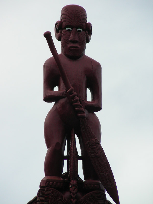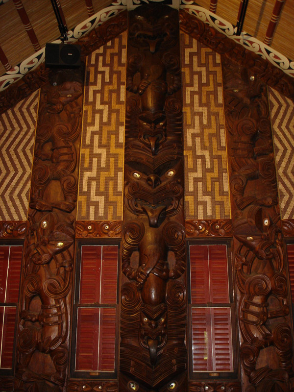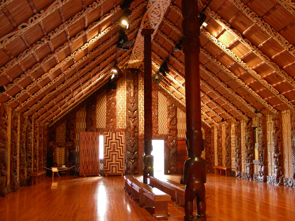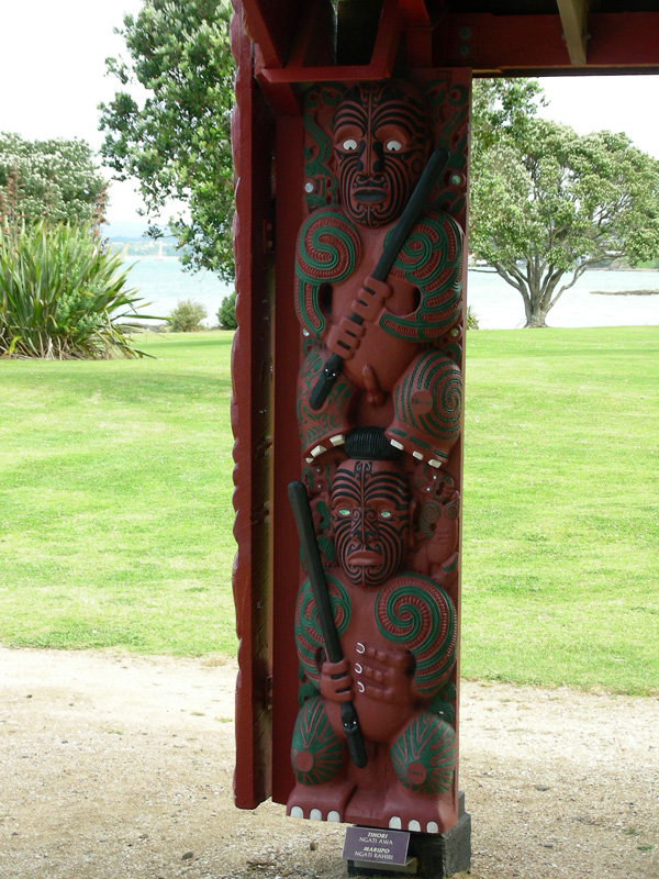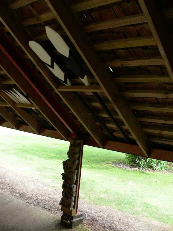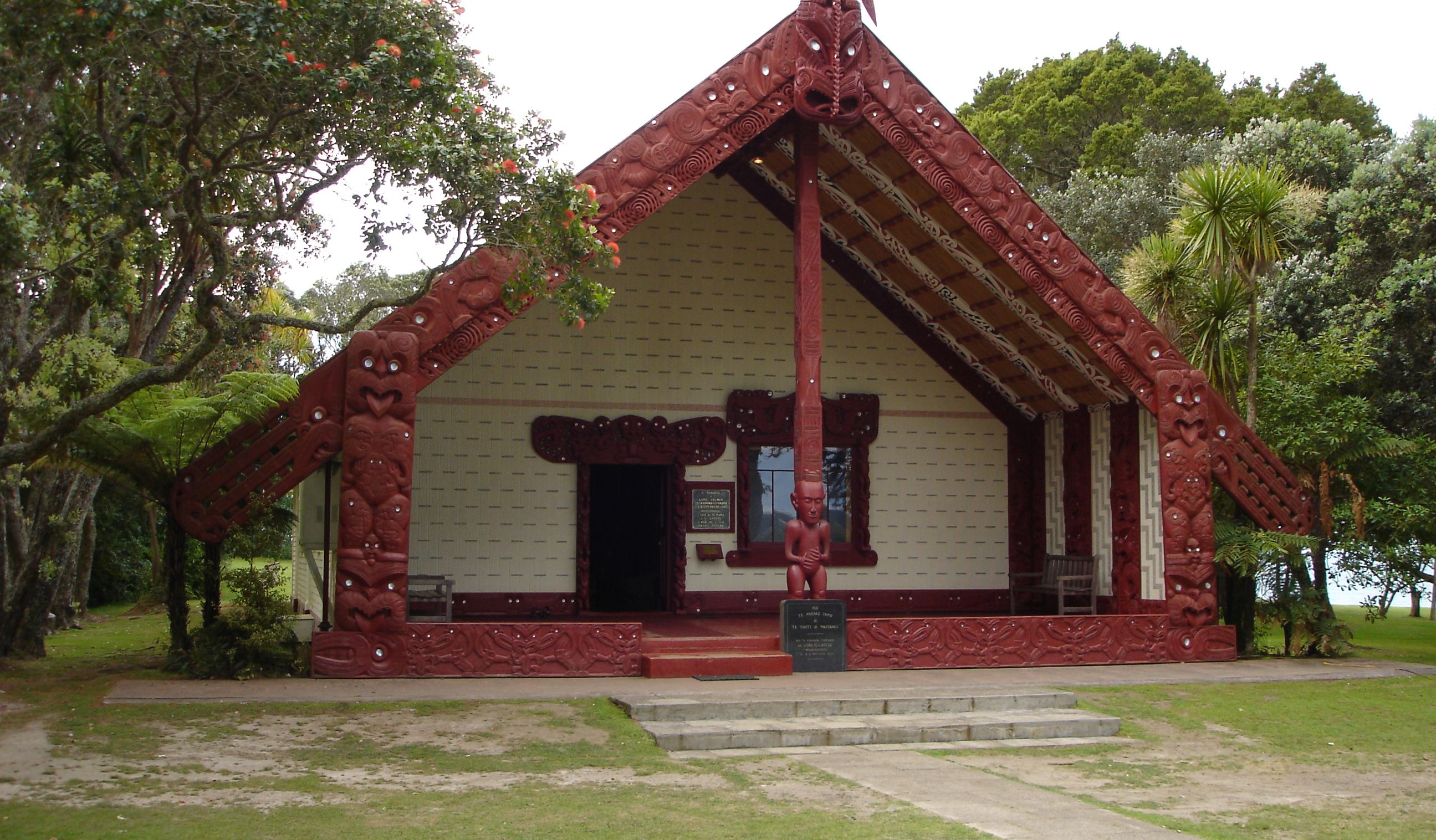 Whare Runanga, la casa della riunione: perno principale della cultura dei Maori. Una casa scolpita nel legno, posta di fronte a quella dove si è firmato il trattato, rappresenta l’unità del popolo indigeno e il suo prestigio tribale.