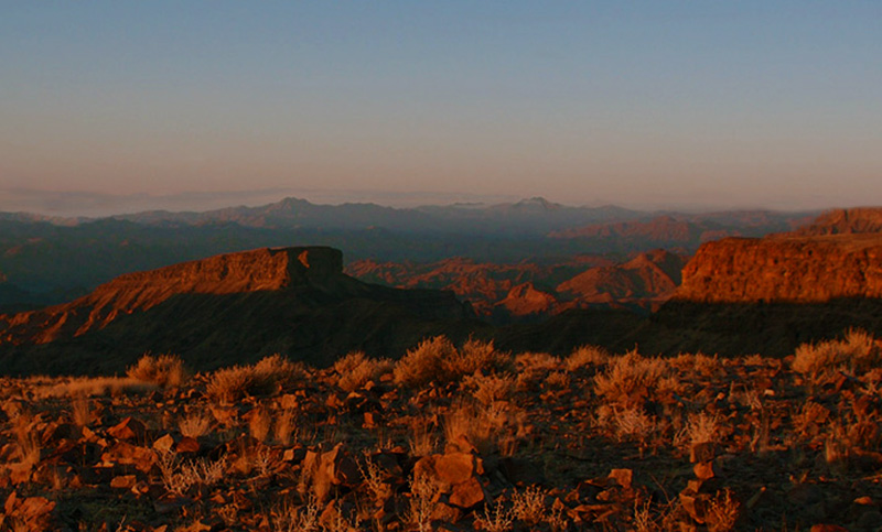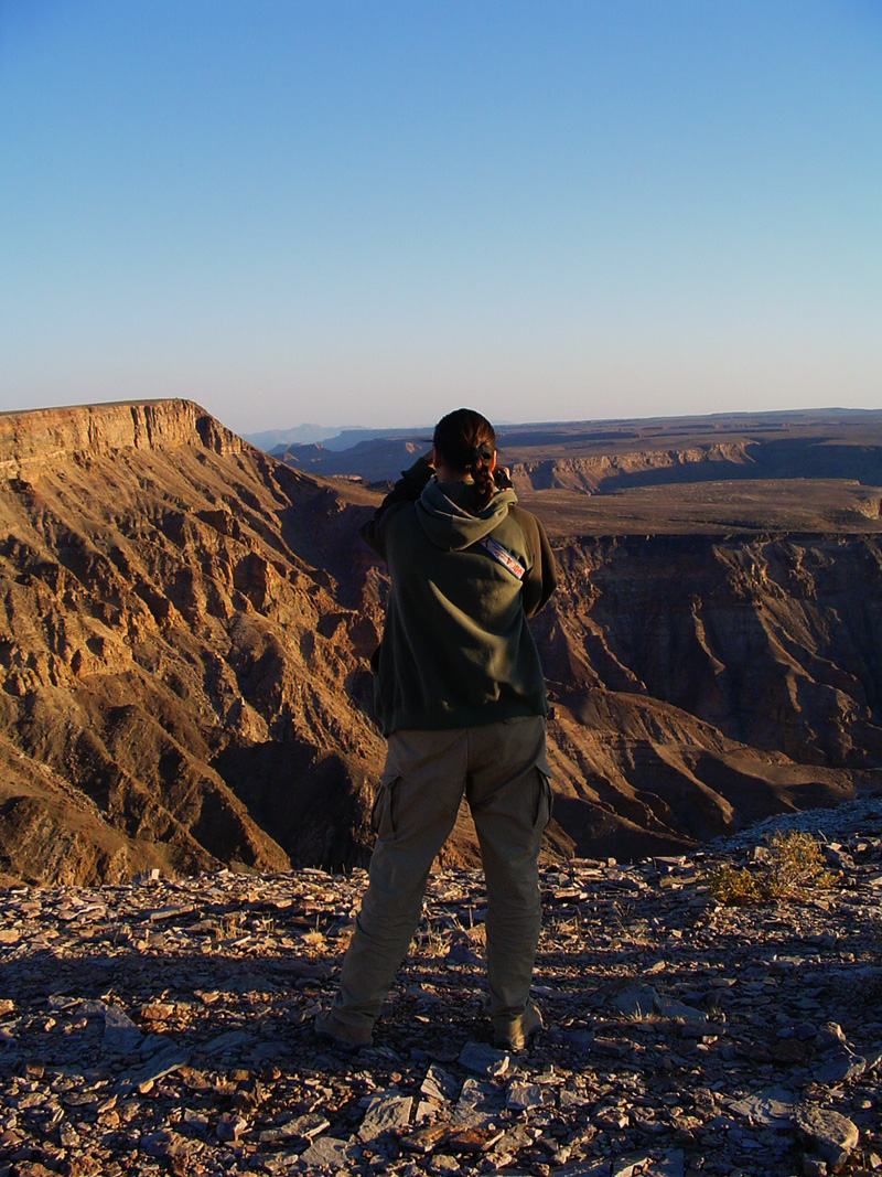 Una vista incredibile dell’intera valle si combina con le prime impressioni del Nama Karoo da una parte, ecosistema di vegetazioni basse ad arbusto, e del Fish River dall’altra, oltre il quale c’è il Karoo, la zona meno arida, costituita da savana e prateria.