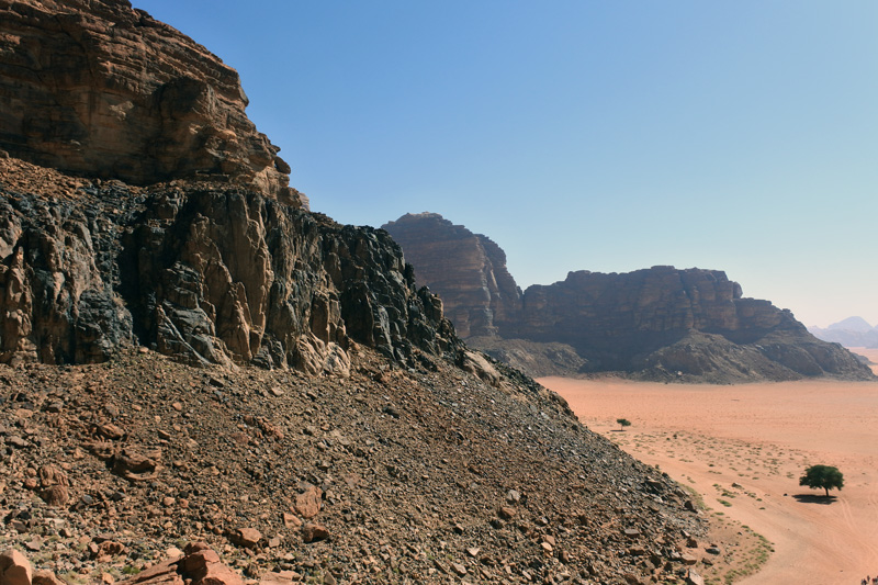 Wadi Rum è una valle situata in Giordania meridionale, conosciuta anche con il nome di Valle della Luna: ha avuto origine da un fiume, che ha scavato, nel corso di molti millenni, il suolo sabbioso e roccioso.